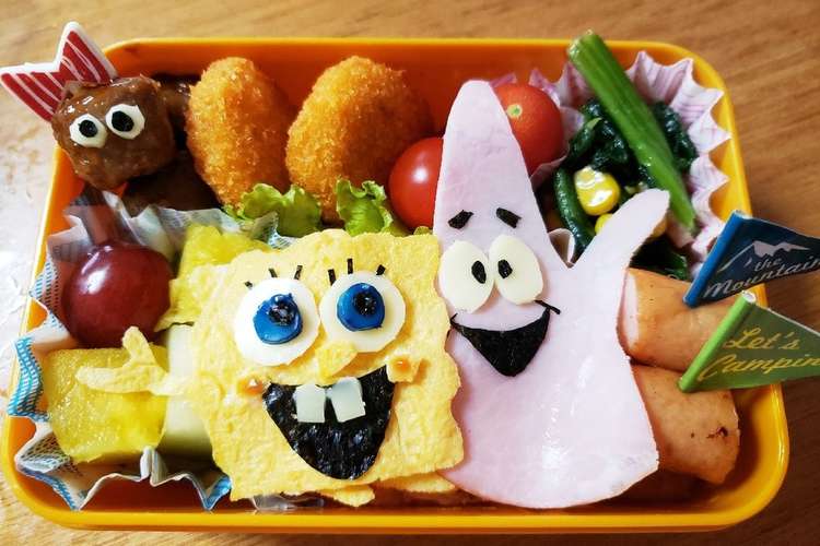 型取るだけ簡単 スポンジボブキャラ弁 レシピ 作り方 By Nayuu12 クックパッド 簡単おいしいみんなのレシピが357万品